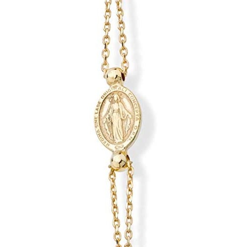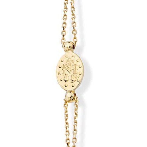 • STYLISH AND INSPIRATIONAL - Show your spiritual side with this dainty 18k gold over 925 sterling silver cultured freshwater pearl rosary bracelet featuring a classic Miraculous Medal of the Virgin Mary and a sideways polished cross. Wear it as a timeless symbol of your faith or as a cool fashion statement. Looks just as beautiful with a casual outfit or a dressy attire. Comfortable and chic for everyday wear. Adjustable in length for a perfect fit. Wear alone or layered with other chains.