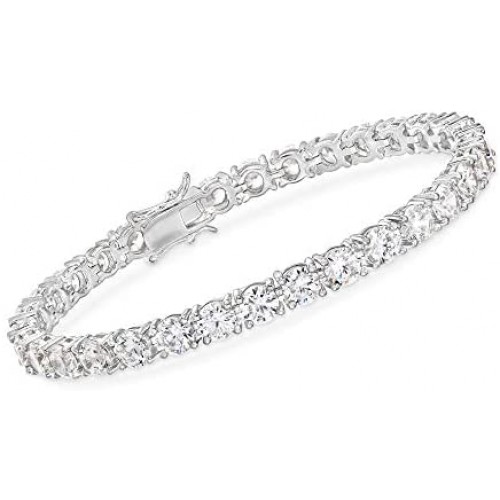 • CZ AND STERLING SILVER? 17.00 ct. t.w. CZ tennis bracelet in sterling silver. Features 36 round brilliant-cut CZs. Polished finish. 8 in. long. 3/16 in. wide. Double-latch safety. Box clasp.