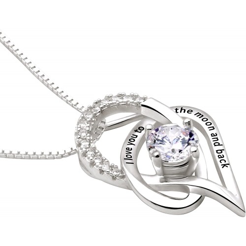 ALOV Jewelry Sterling Silver I Love You to The Moon and Back Love Heart Cubic Zirconia Pendant Necklace