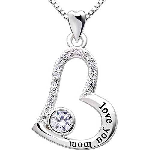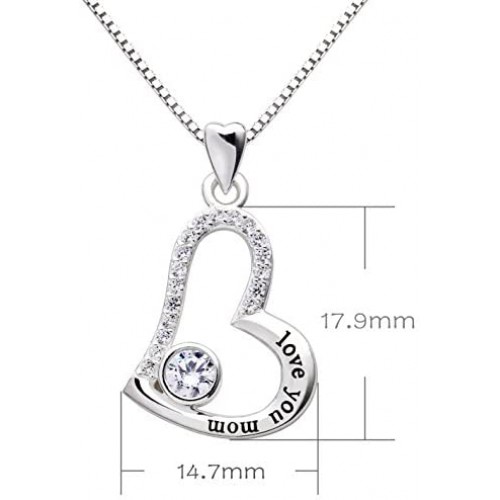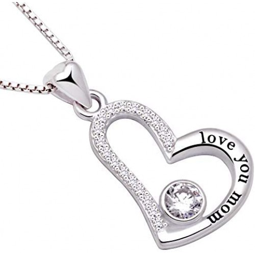 ALOV Jewelry Sterling Silver Love You mom Love Heart Cubic Zirconia Mother Pendant Necklace