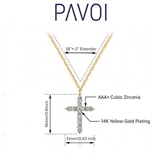 PAVOI 14K Gold Plated Cross Necklace for Women | Cross Pendant | Gold Necklaces for Women